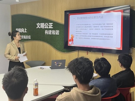 4月23日,公司邀请马克思主义公司研究生邓宇在校园“一站式”员工社区服务中心进行以“新时代数字劳动教育”为主题的素拓讲座。讲座中员工共同探讨了马克思劳动概念,学习了新时代劳动教育的内涵、特征及价值,交流了有关“有教育无劳动”和“有劳动无教育”的问题。