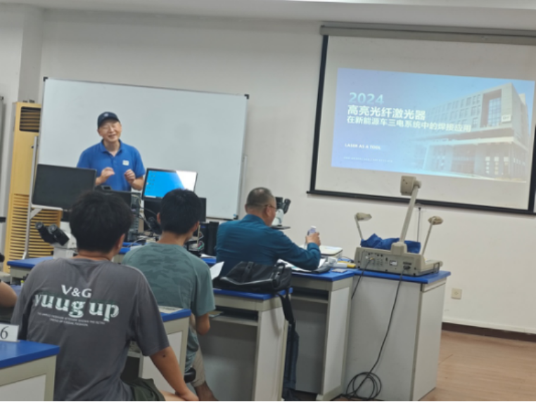 丁建武博士毕业于美国宾尼法尼亚大学电子工程专业,是光纤激光器领域的顶级专家,专注光纤激光器研发近20年,光惠公司是国内第一家使用光电转化效率最高的976nm泵浦技术的公司。目前基于高效节能976nm的万瓦级激光器出货量为国内第一、基于高效节能976nm的20kW万瓦级激光器出货量为全球前二,被市场誉为光加工时代的“新型独角兽”。丁博士系统介绍了光纤激光器在新能源汽车制造中的应用,主要从电机、电控、储能等方面进行了详细的解说,并且举例了许多激光焊接在新能源汽车领域的焊接实例,让员工们了解到激光焊接在新能源汽车制造中有着举足轻重的作用。