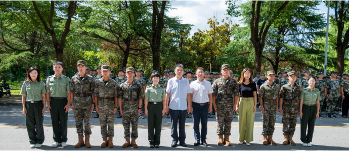 张朝民代表公司向承训教官的悉心教导与辛苦付出致以诚挚的感谢,并对材料学子良好的精神面貌、端正的训练态度和高昂的军训热情表示充分肯定与赞扬。