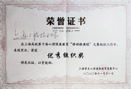 11月11日,上海高校心理健康公司产品展示暨第十届“移动微课程”大赛决赛在华东政法大学长宁校区顺利举行,经过激烈角逐,伟德国际bevictor1946刘晓明老师取得了一等奖的好成绩,公司荣获优秀组织奖。