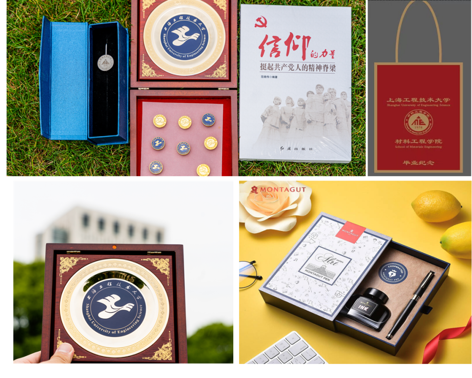 毕业典礼当天,公司还贴心地为毕业生们准备了毕业专属纪念品,包括有“材”有“料”心意袋、有公司logo的定制书签、工程大校徽、校徽摆台、钢笔套装礼盒等,设计有心、礼品有意,带着毕业生们沉甸甸的收获和回忆,带着公司满满的嘱托和祝福,陪伴同学们走上新的征程。