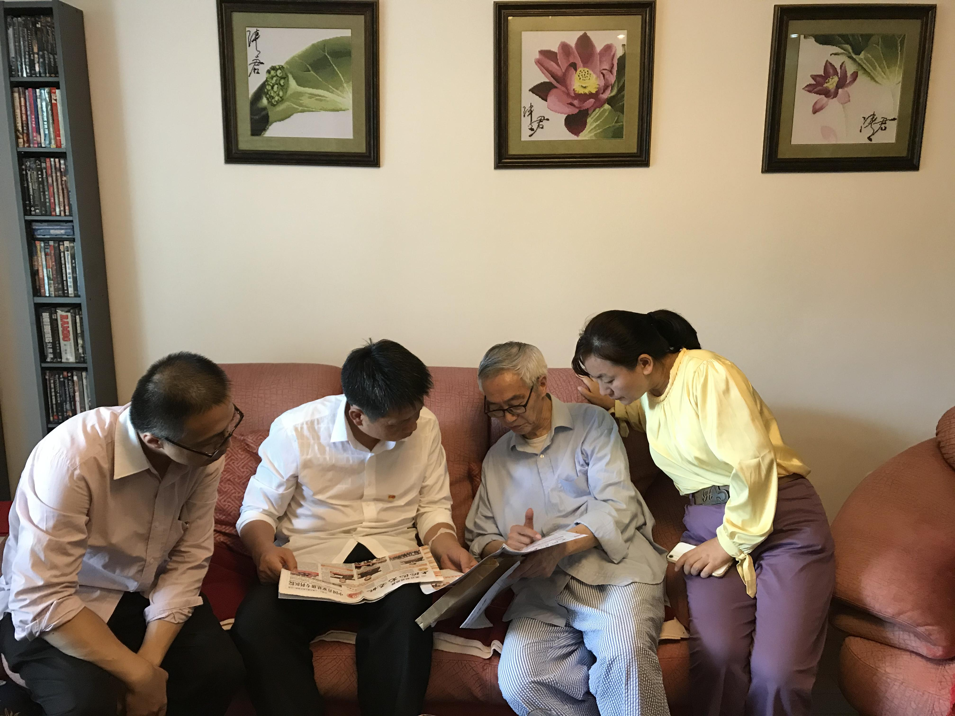 下午,张朝民书记一行看望走访了高龄、生病的老同志张光钧、石树声、陈建业,把党组织、工会的关心带给老同志。